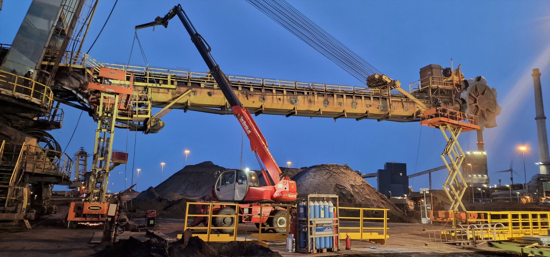 Voor Tata Steel heeft Mercon onderhoudswerkzaamheden aan de Wielgraver 23 uitgevoerd. Dit onderhoud bestond uit het vernieuwen van de bordessen aan weerszijde van de wielgraver.