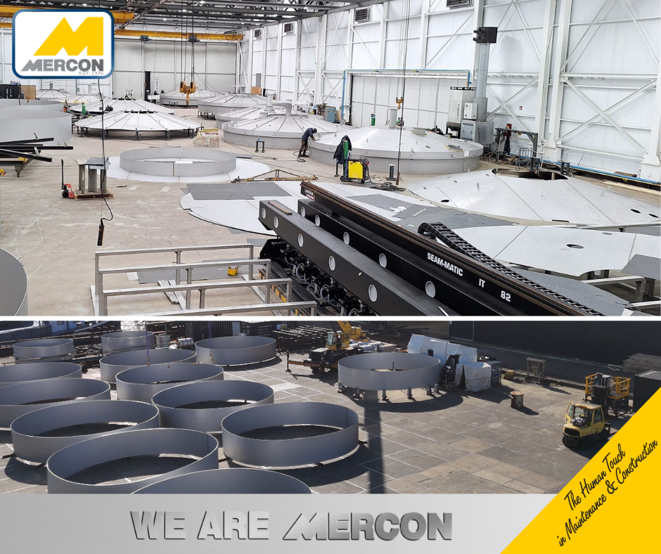 De voortgang van de bouw van 10 stainless tanks bij Mercon is duidelijk zichtbaar. Onze constructiehal raakt met de dag voller: meerdere tanks bevinden zich in verschillende productiefases. Ook buiten is dit project niet te missen – de eerste secties van de tanks zijn inmiddels zichtbaar op het buitenterrein.